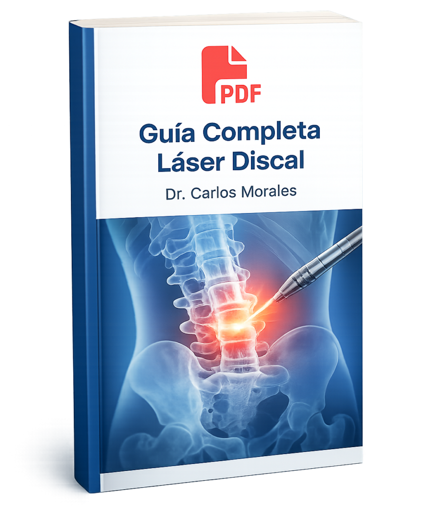 El canal láser se aplica en el mismo núcleo de la hernia, evaporando el material en pocos minutos para reducir la presión interna.